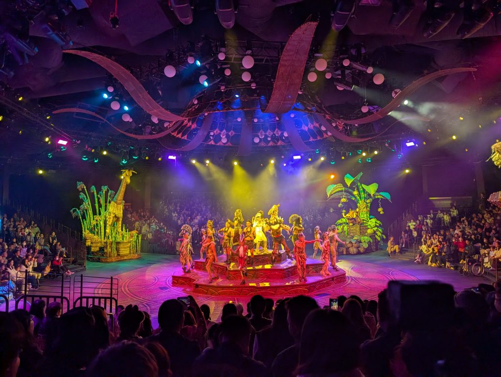 Food was mediocre, the Iron Man burger I had for lunch was tasty but unsurprisingly expensive. The amount of birds flying over the seating areas was a little concerning as there were bird faeces around. The meal we had in the evening at one of the sit down restaurants was much better.